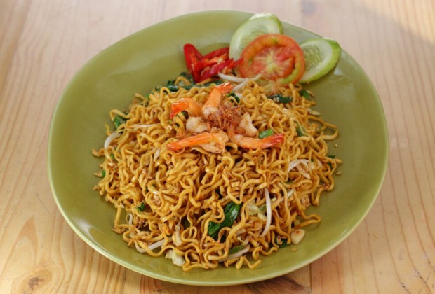 Potong daging ayam seukuran dadu, dan bersihkan udang. Mi goreng terbuat dari mi kuning yang digoreng dengan sedikit minyak goreng, dan ditambahkan bawang putih, bawang merah, udang serta daging. ( di indonesia anda bisa kocok telur, beri sedikit garam dan buat orak arik telur. Goreng cakwe dengan cara dibolak balik hingga berwarna kuning kecoklatan. Anda bisa memvariasikan resep dasar ini dengan berbagai apalagi dengan tambahan mentimun dan kerupuk sebagai pelengkap.