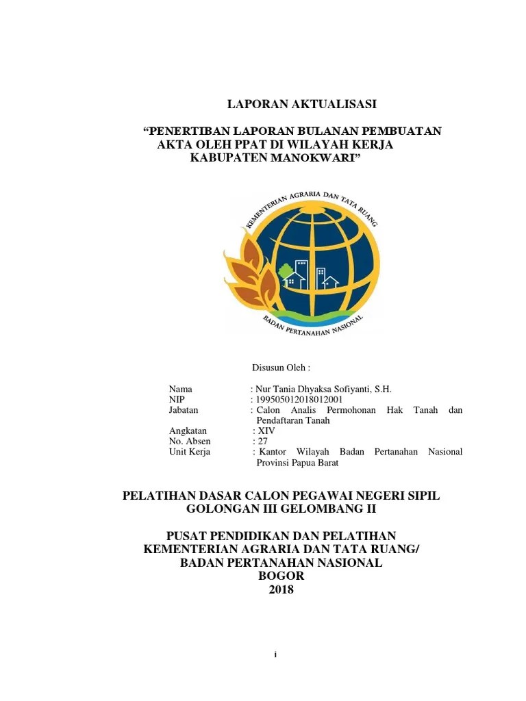 Laporan Aktualisasi Cpns Kementerian Atr / Laporan Aktualisasi Cpns Kementerian Atr Contoh Laporan Aktualisasi Diklat Prajabatan Pola Baru Kumpulan Contoh Laporan Kementerian Agraria Dan Tata Ruang Atau Eido Ishida / Sebagai persiapan menghadapi pendaftaran dan ujian cat cpns 2019, silahkan kamu pelajari info cpns serta soal soal cpns 2019 dan pembahasannya yang tersedia di bawah ini.
